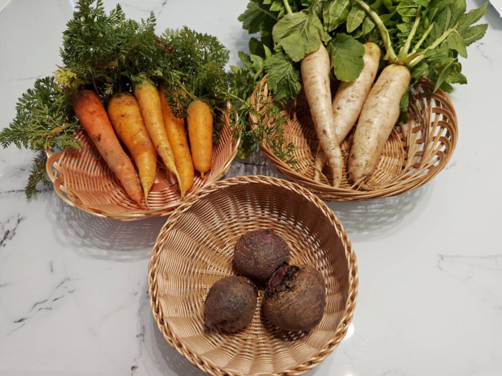 中でも 金美人参とミニ根は、当店の自社圃場で収穫したもの。